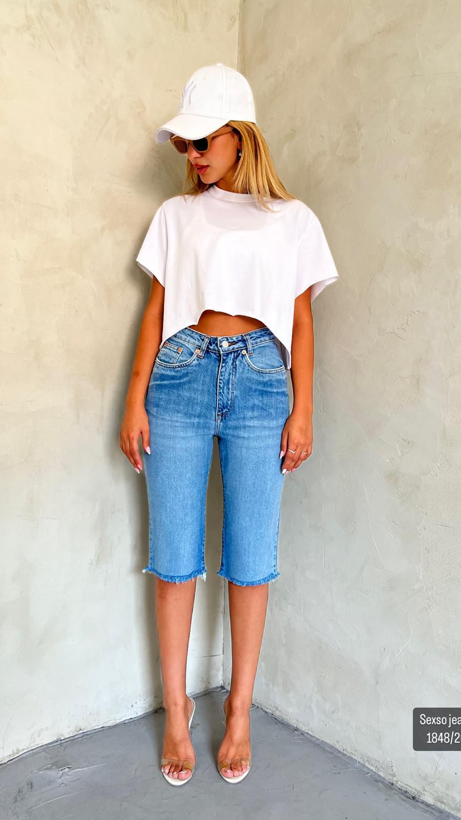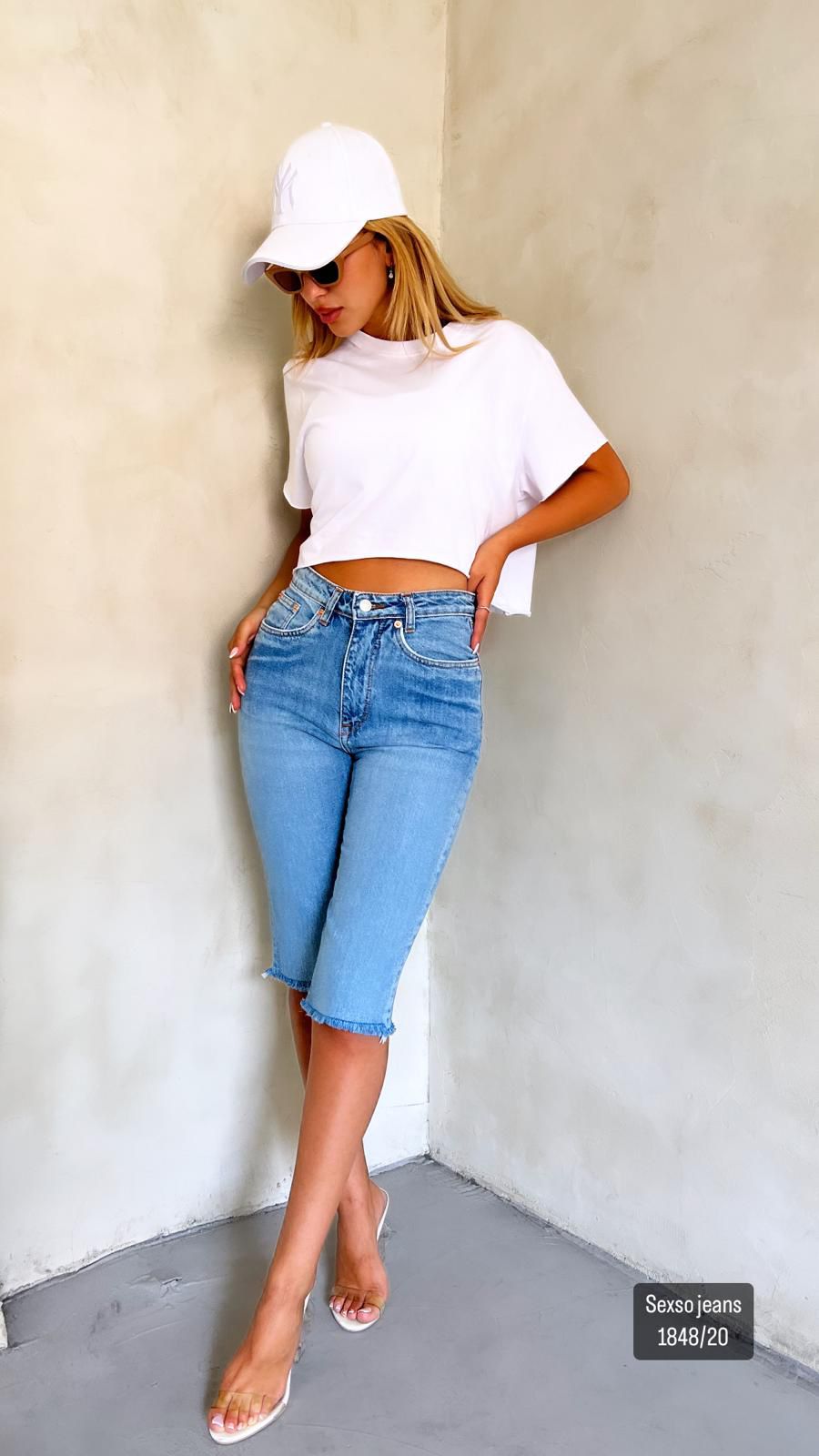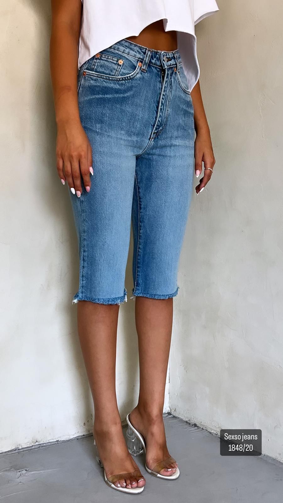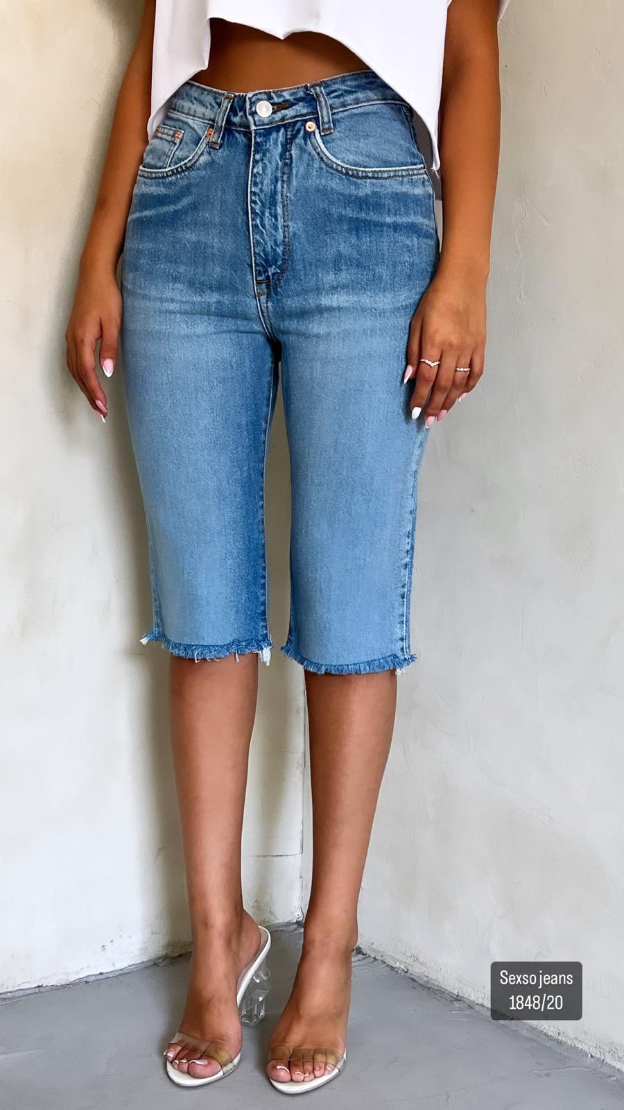 ג'ינס תמרה בגזרה גבוהה ובאורך ברמודה