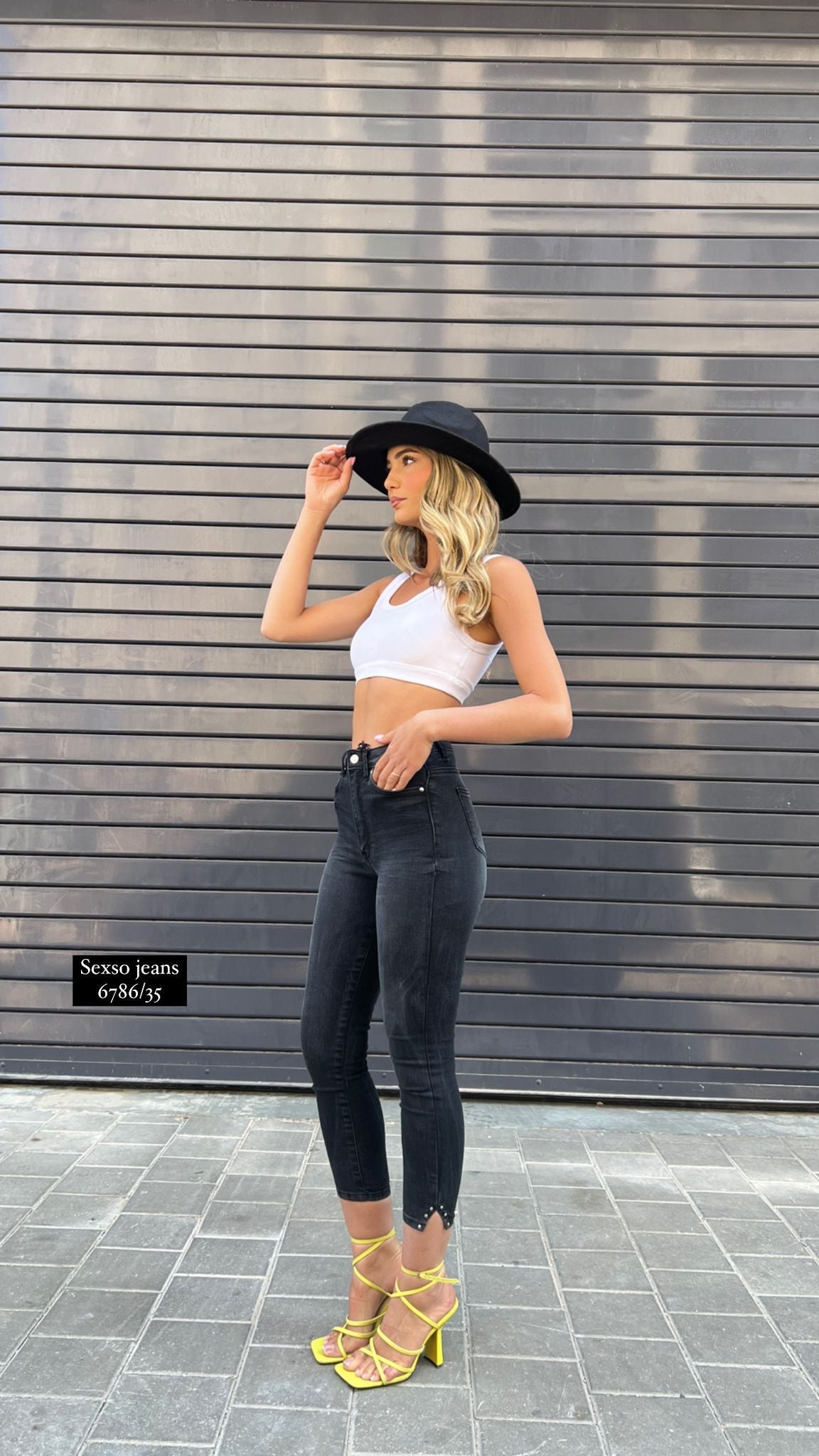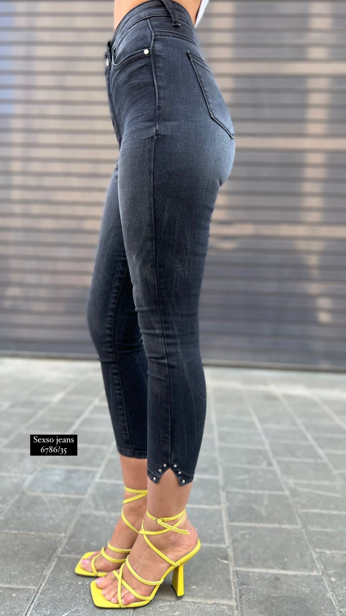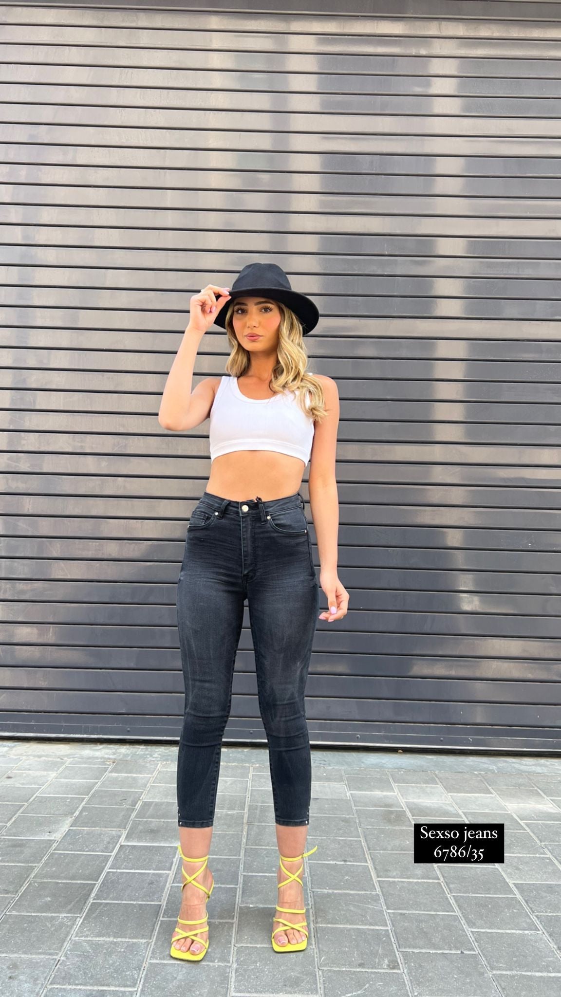 ג'ינס לני בגזרה גבוהה ומחמיאה ובסיומת 7/8