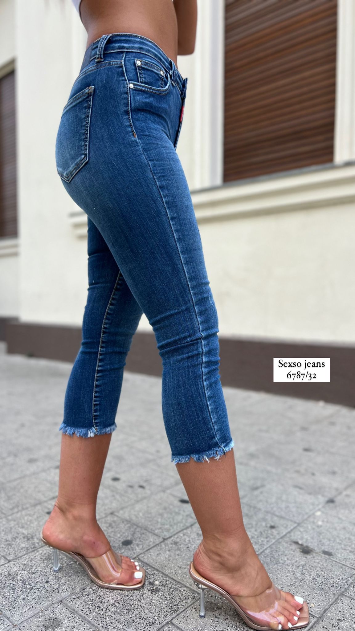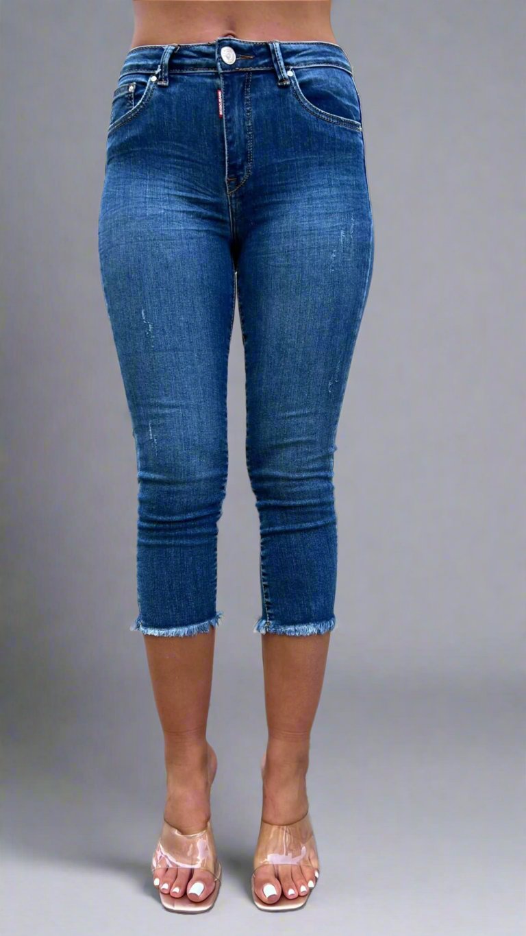 ג'ינס 7/8 יאן ובשילוב פרנזים, בגזרה גבוהה ומחמיאה , בד נעים ללבוש על הגוף , הדוגמנית לובשת מידה 24