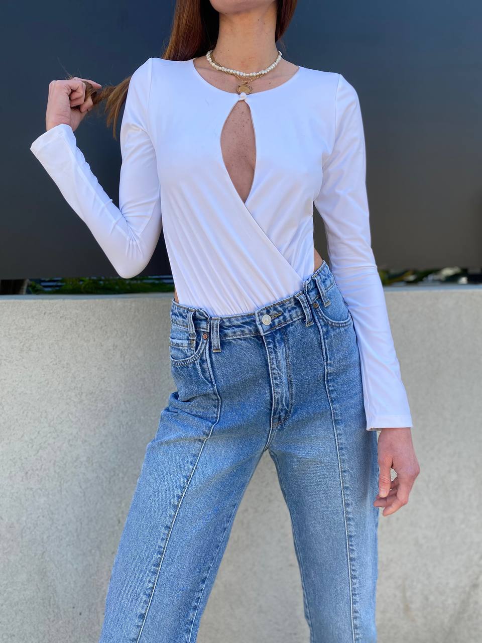 בגד גוף מיתר לבן