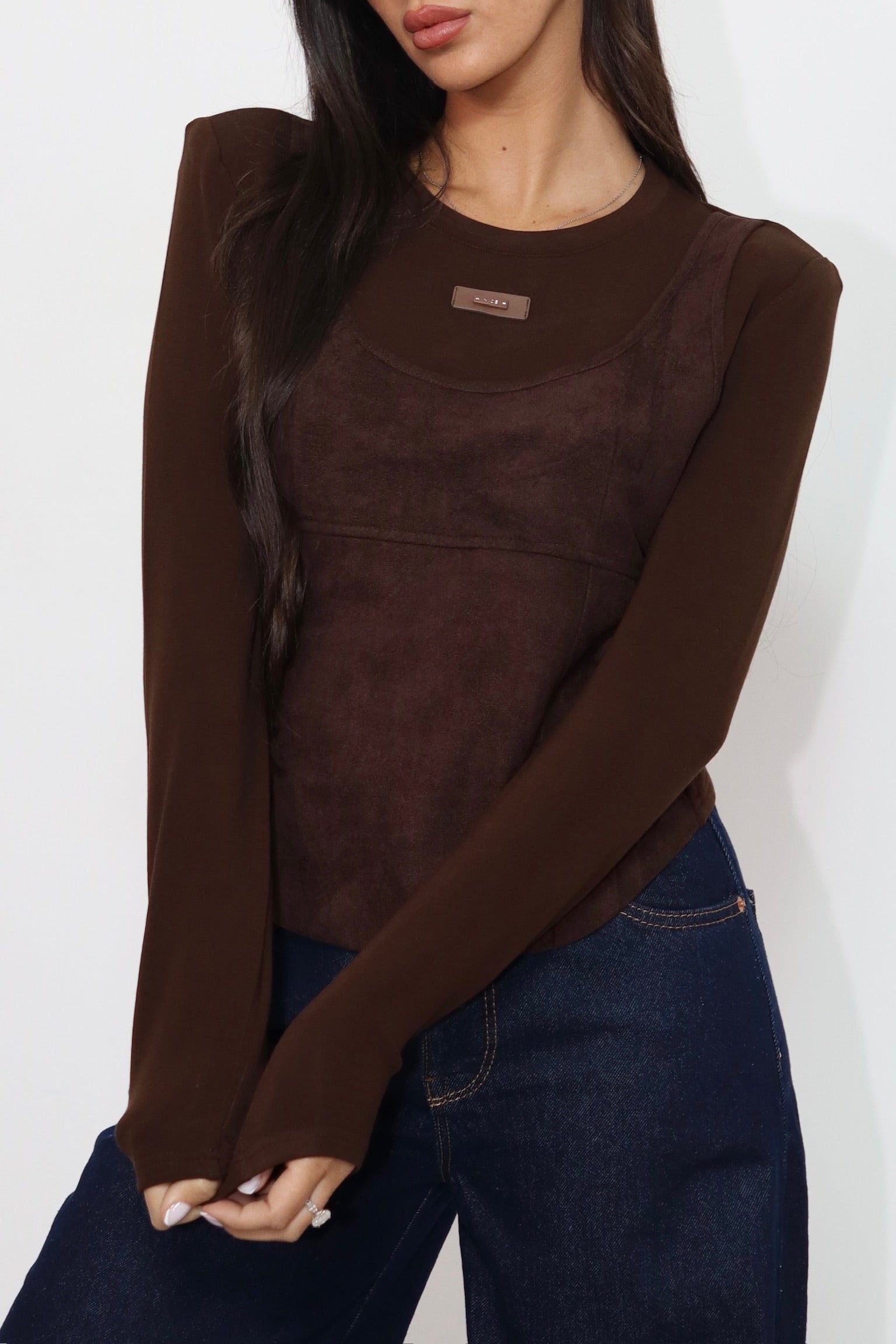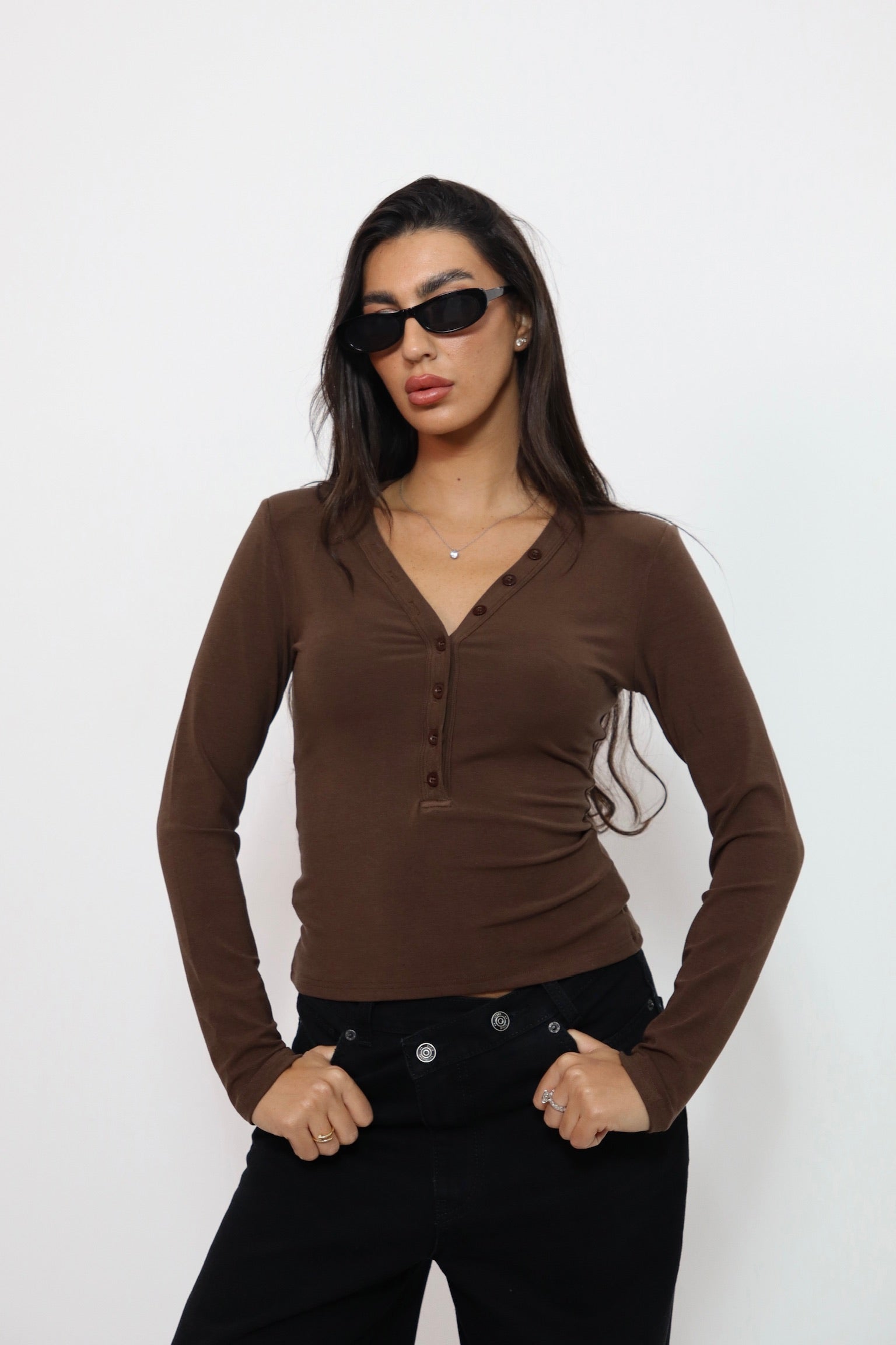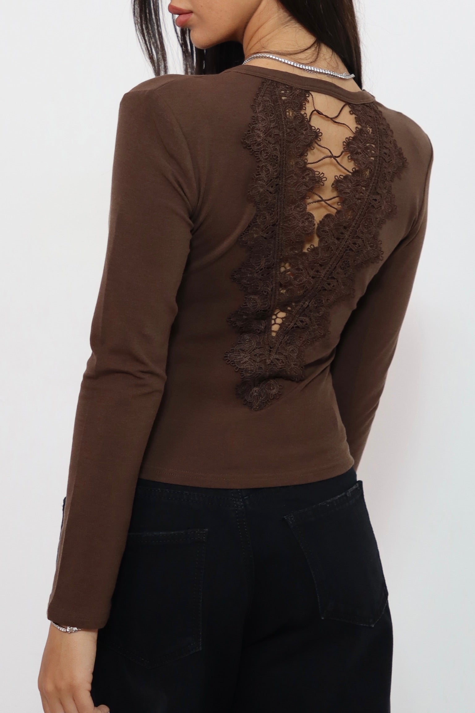 חולצת פתח בגב חום 3835