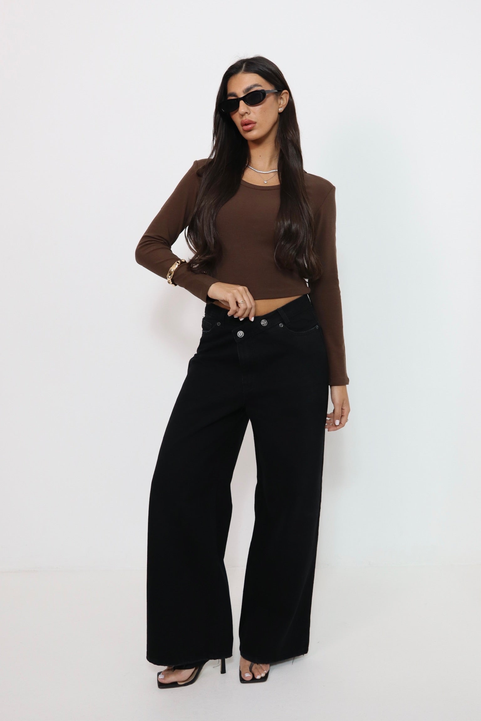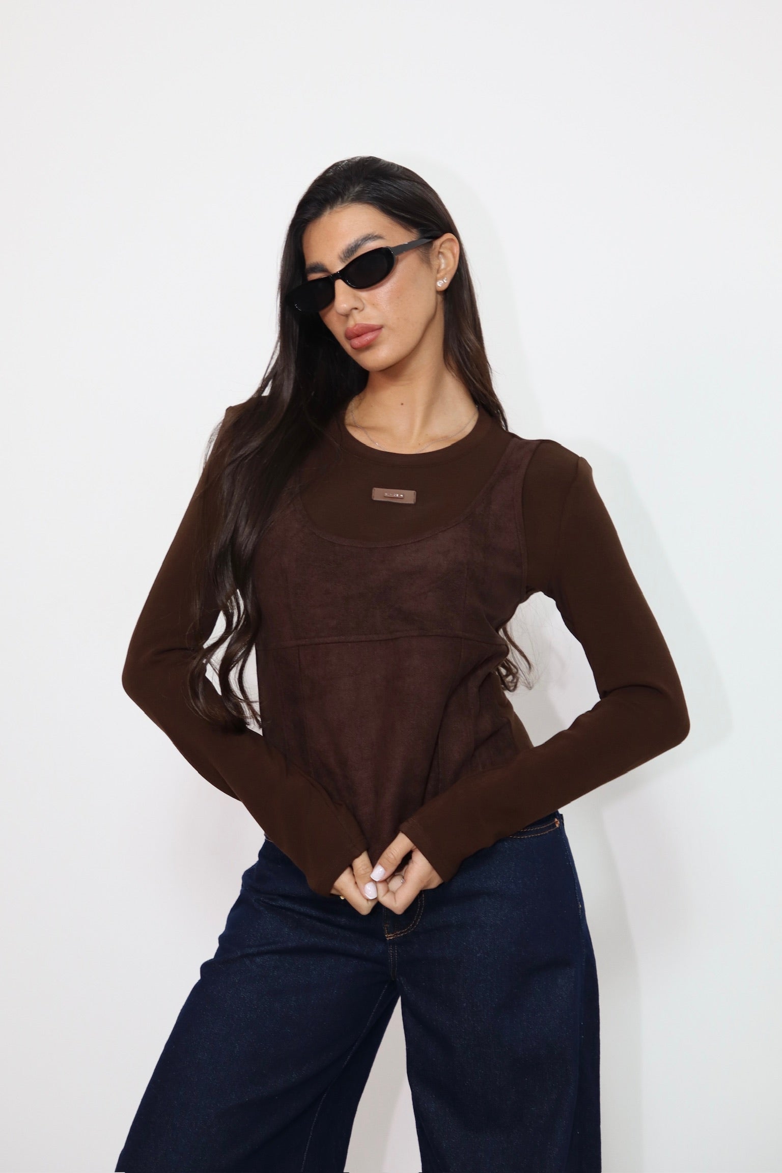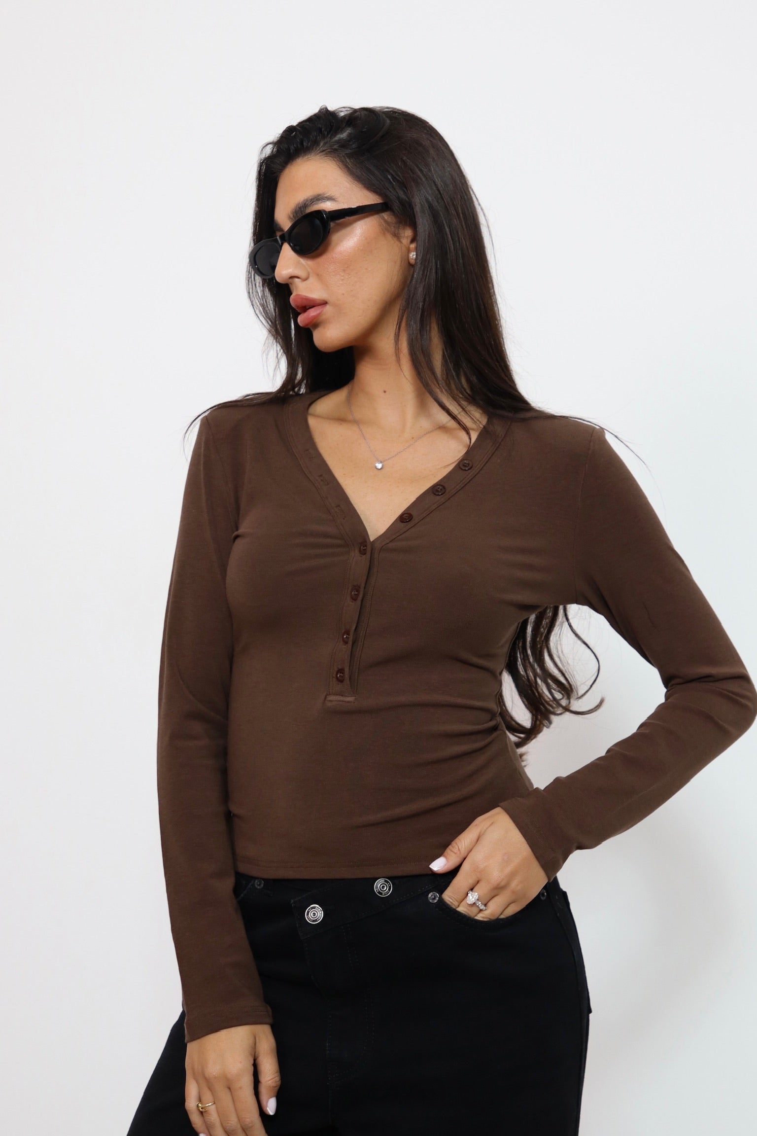 חולצת פתח בגב חום 3835