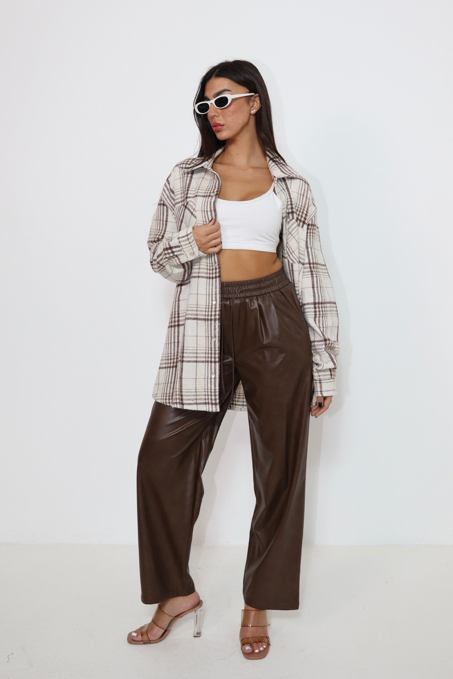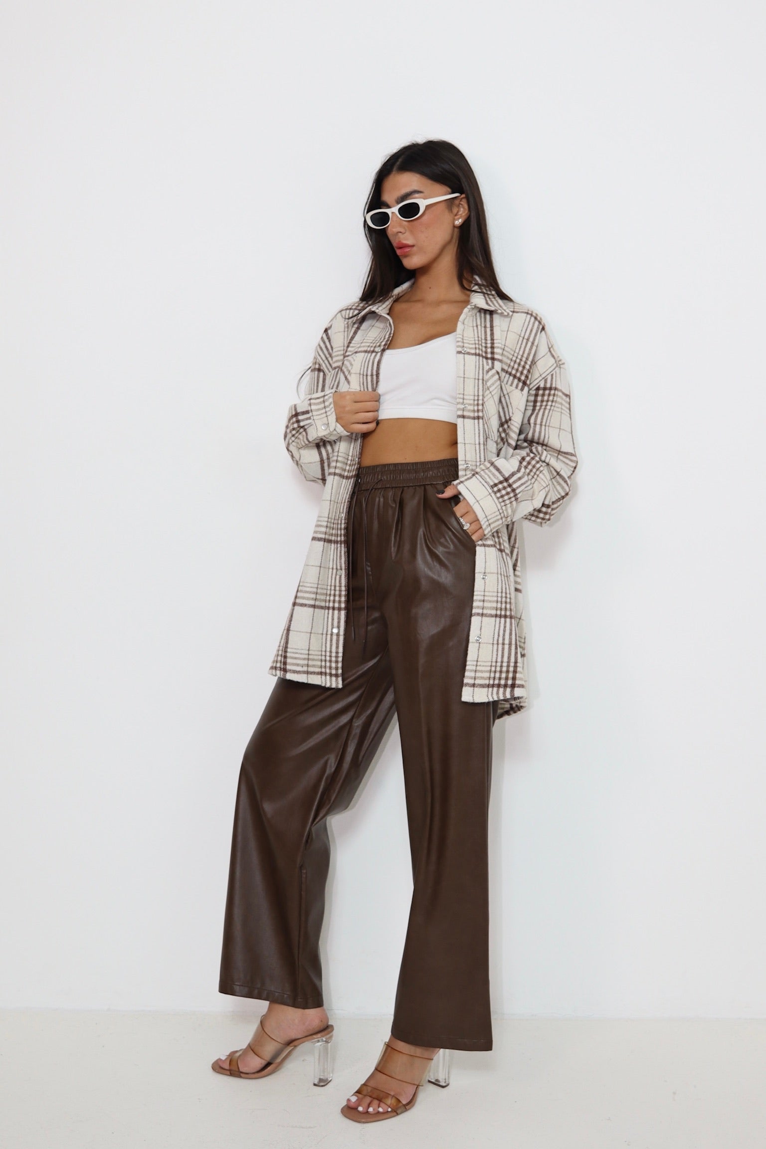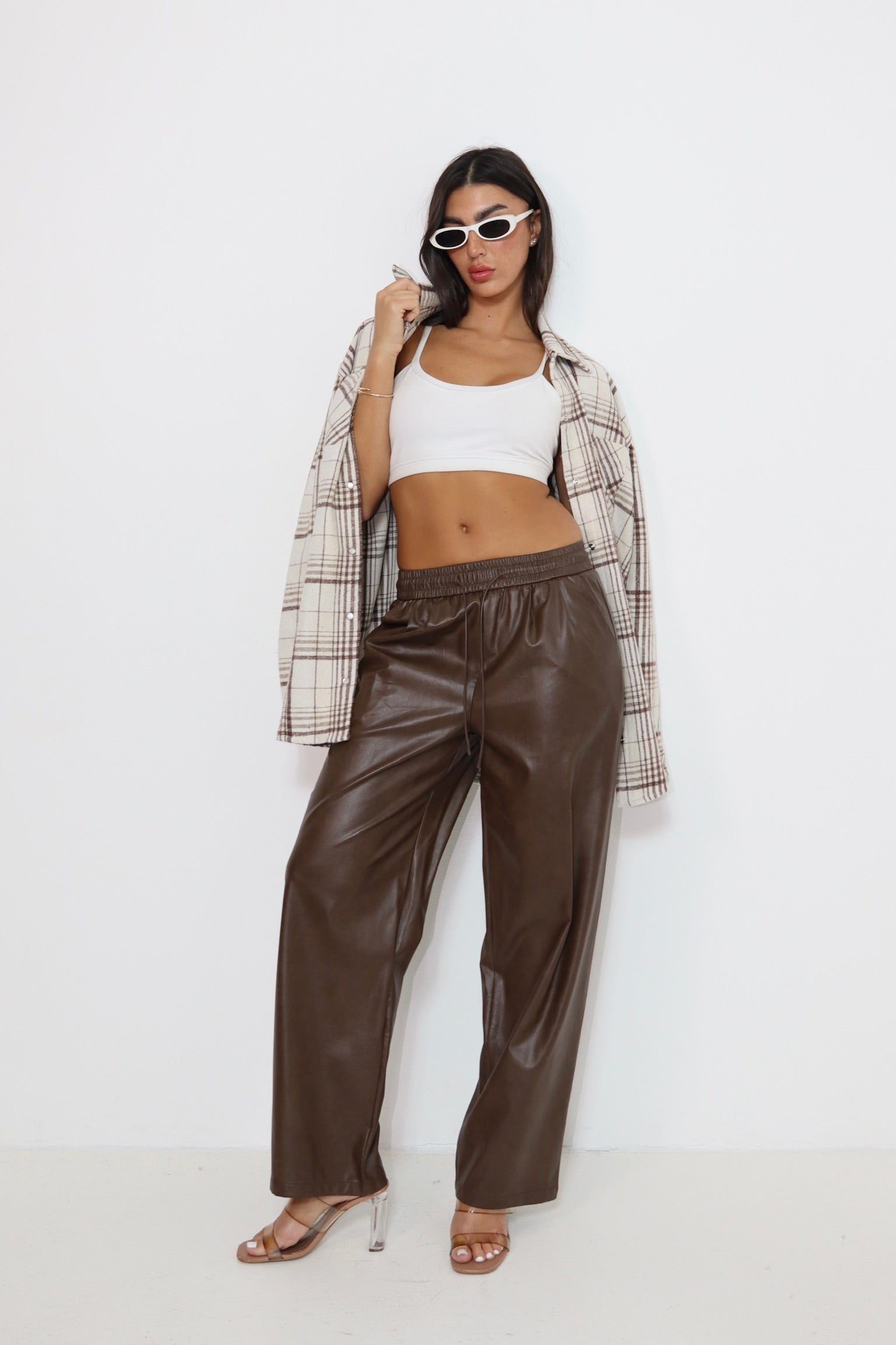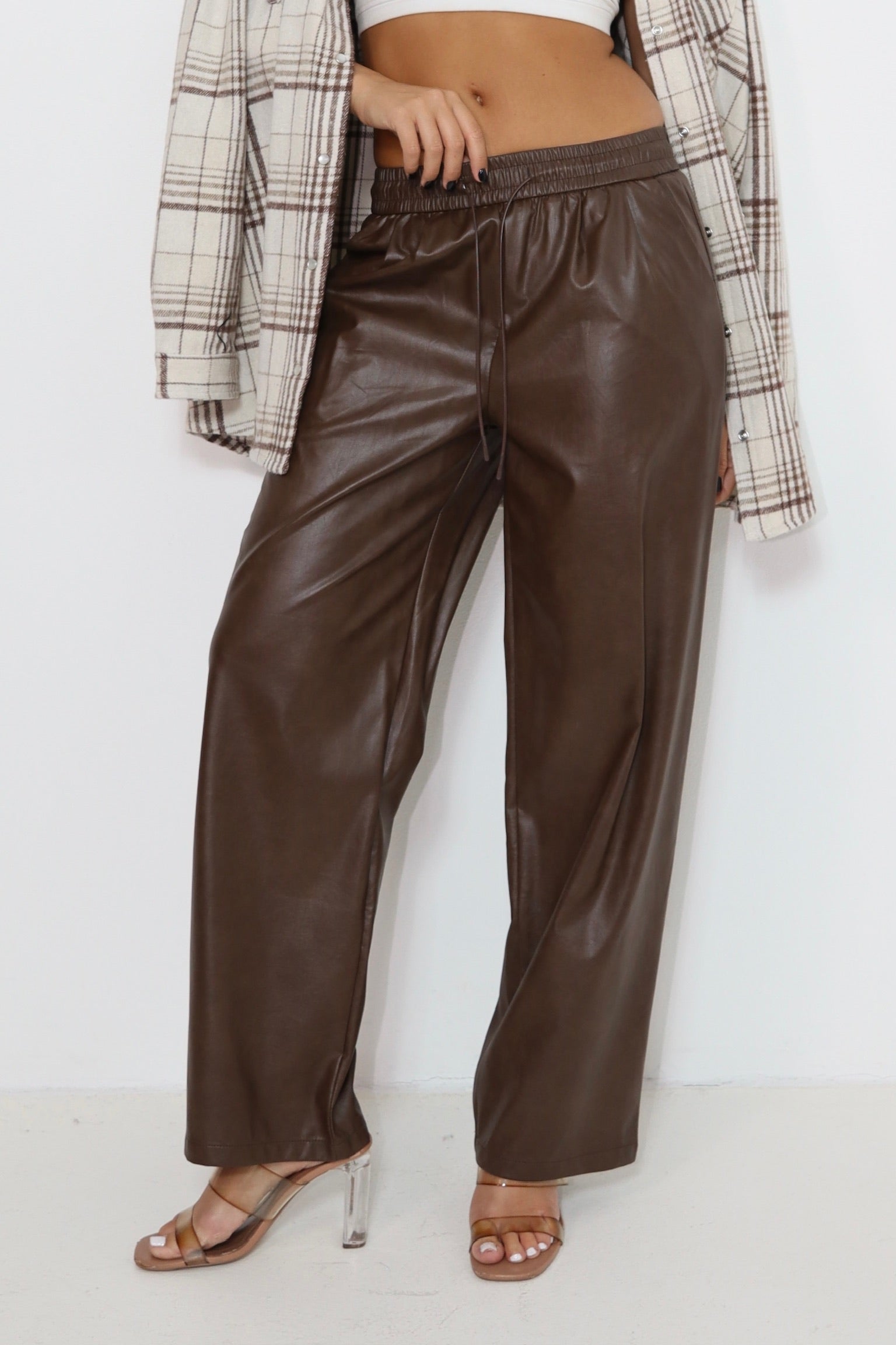 מכנס עור חום 6603