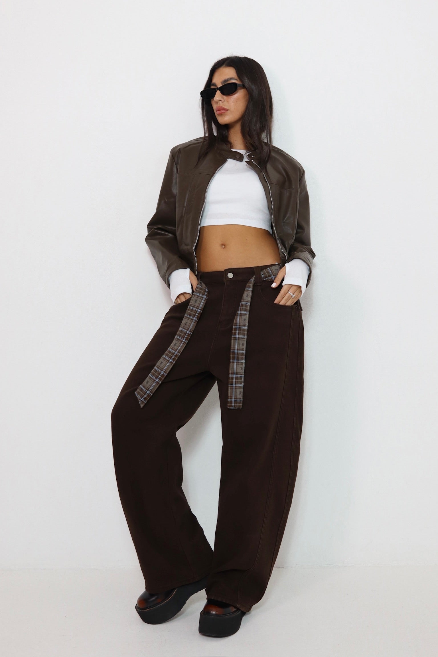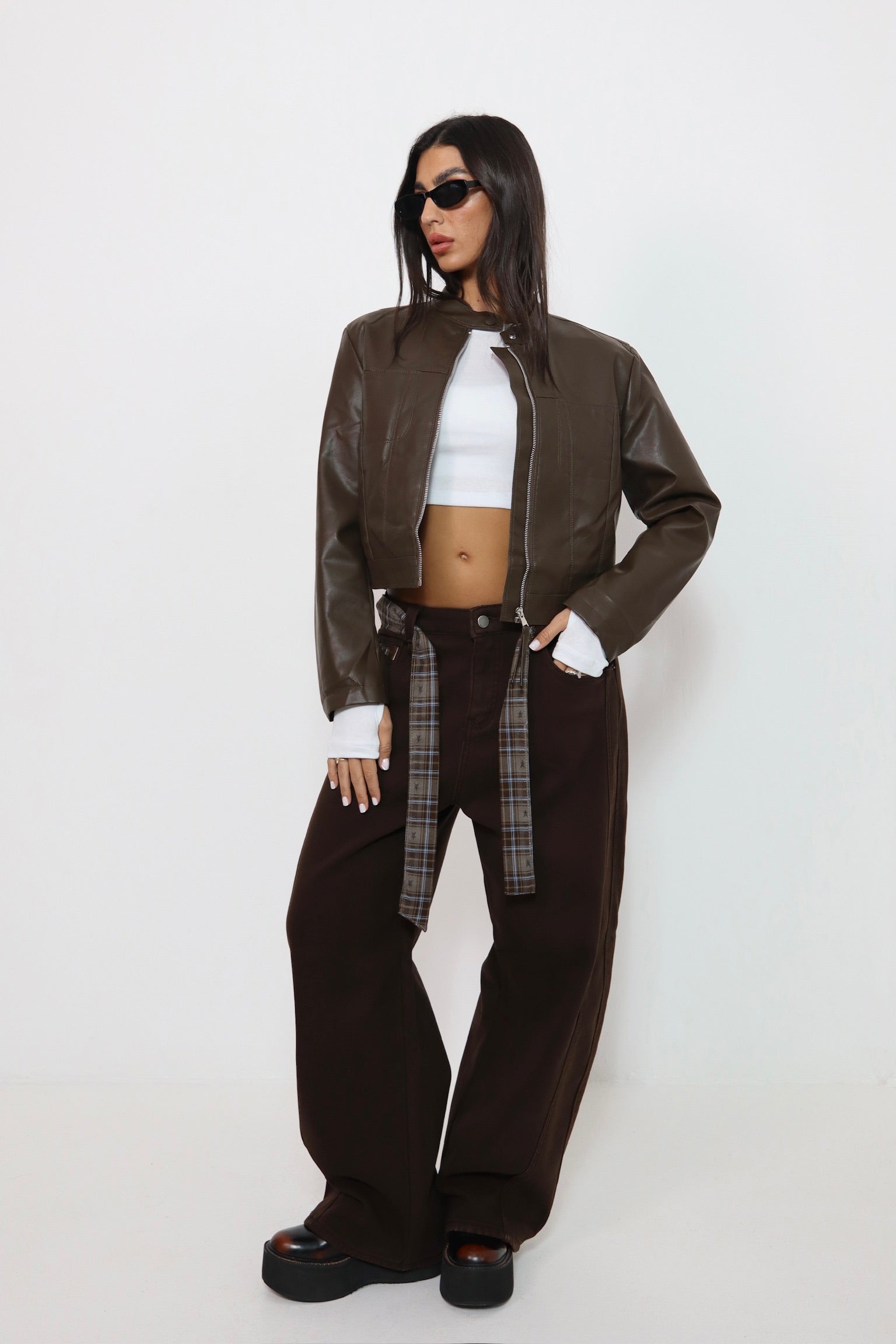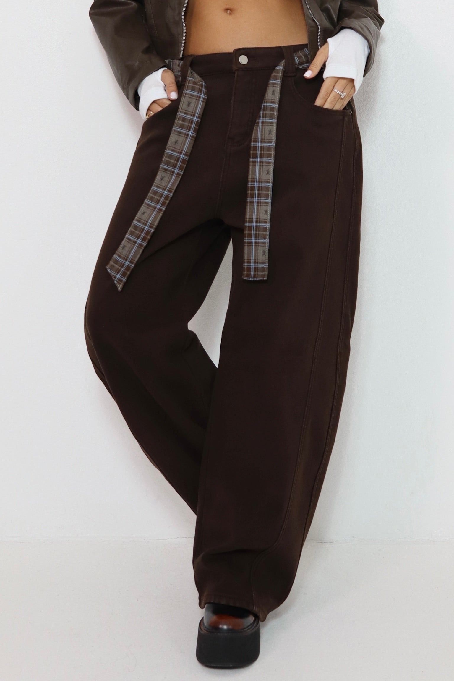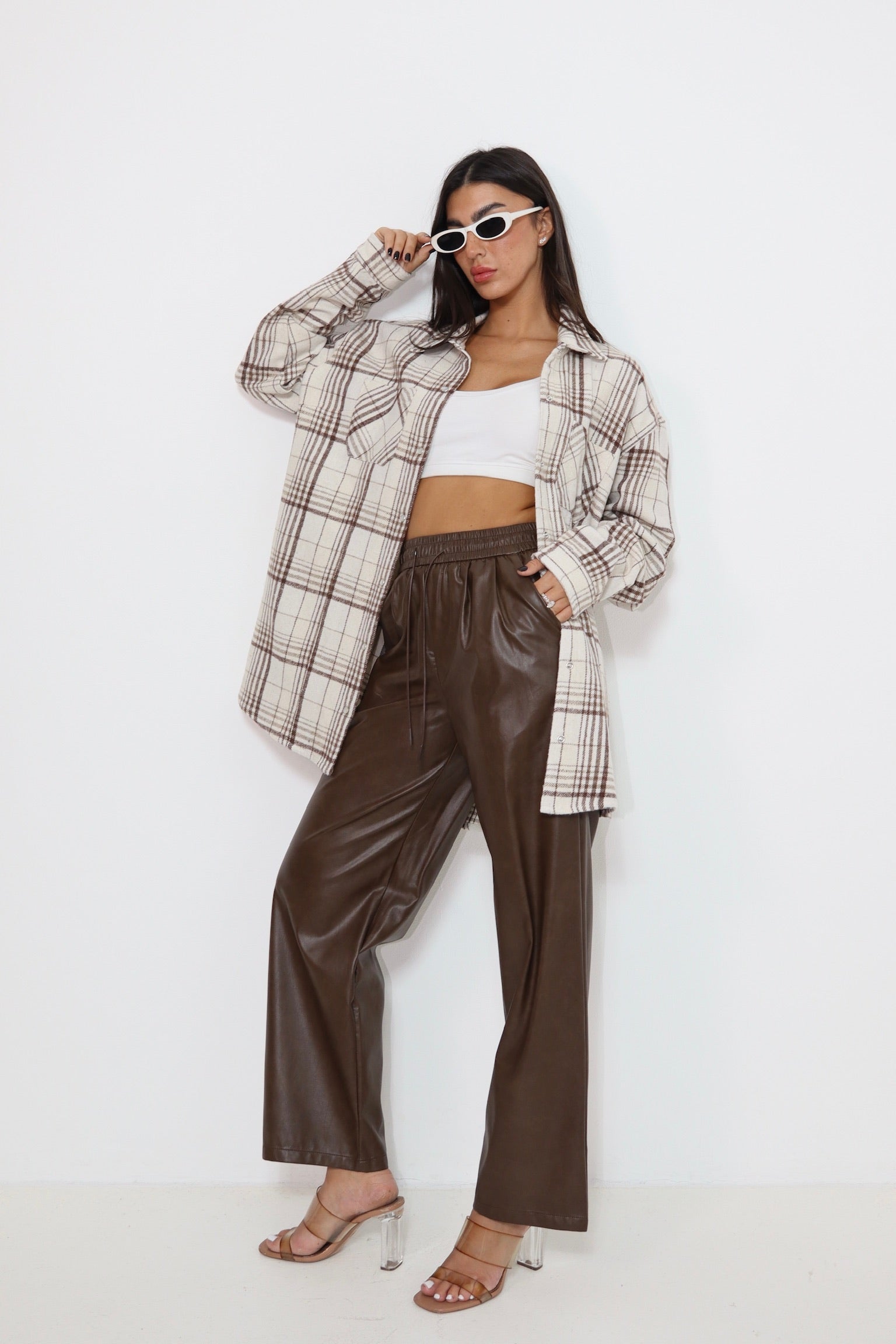 מכנס עור חום 6603