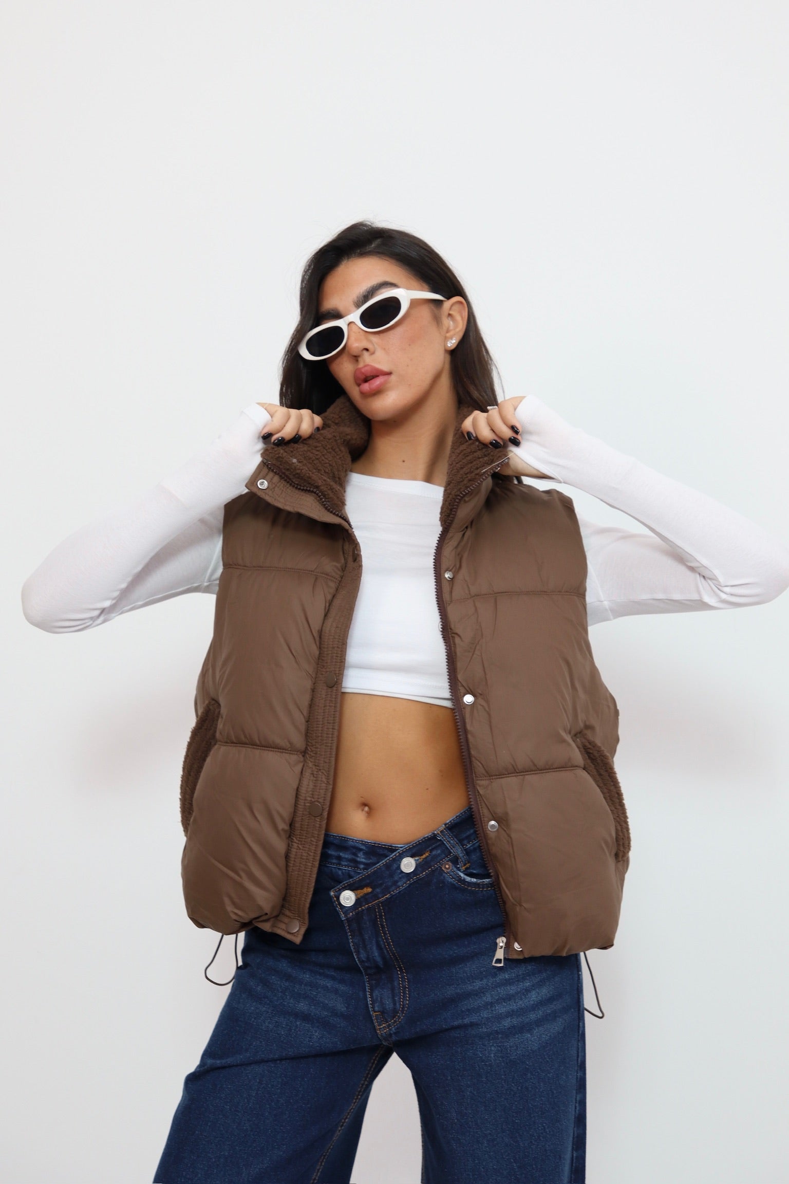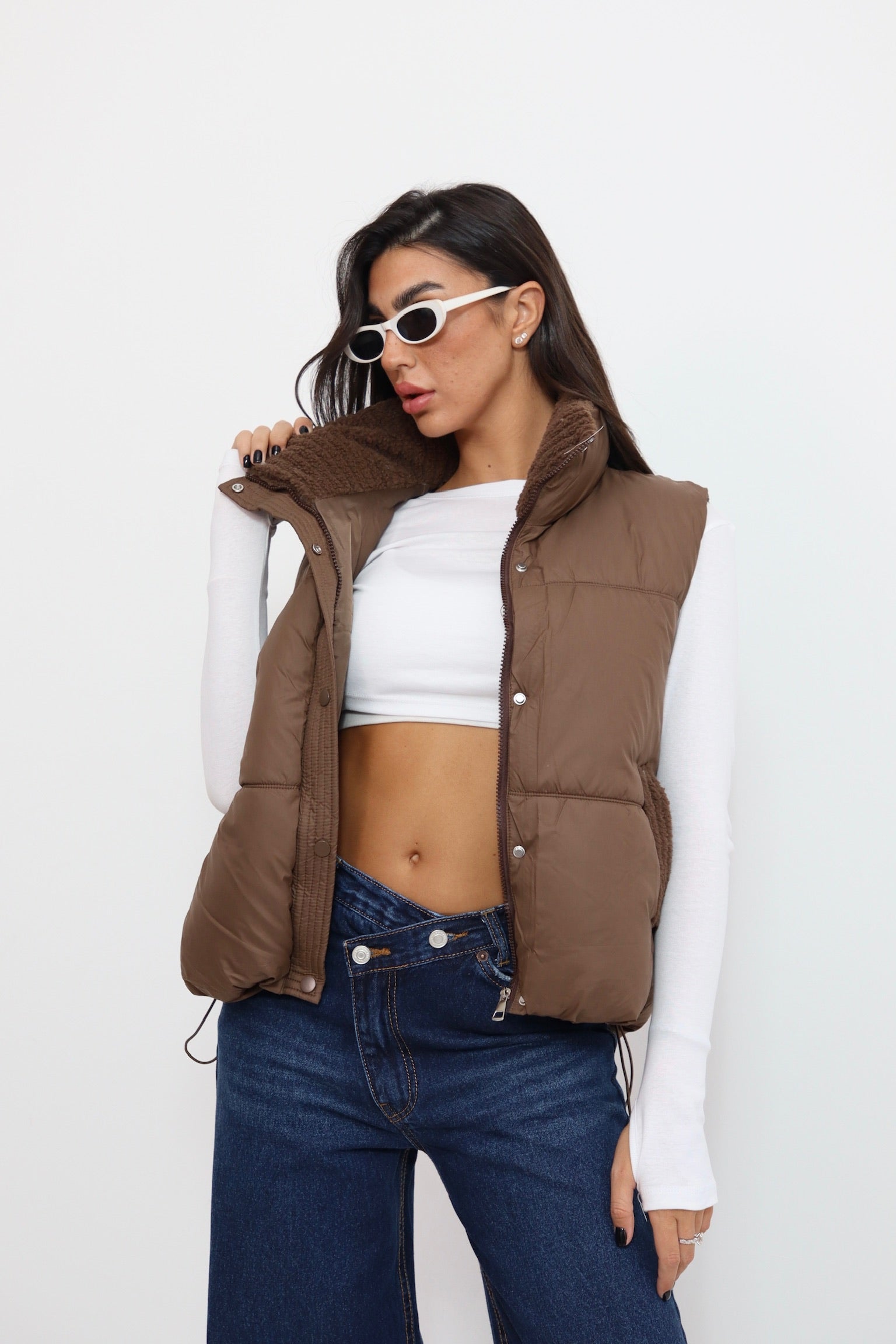 ווסט שילוב פרווה חום 9801