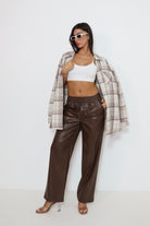 מכנס עור חום 6603