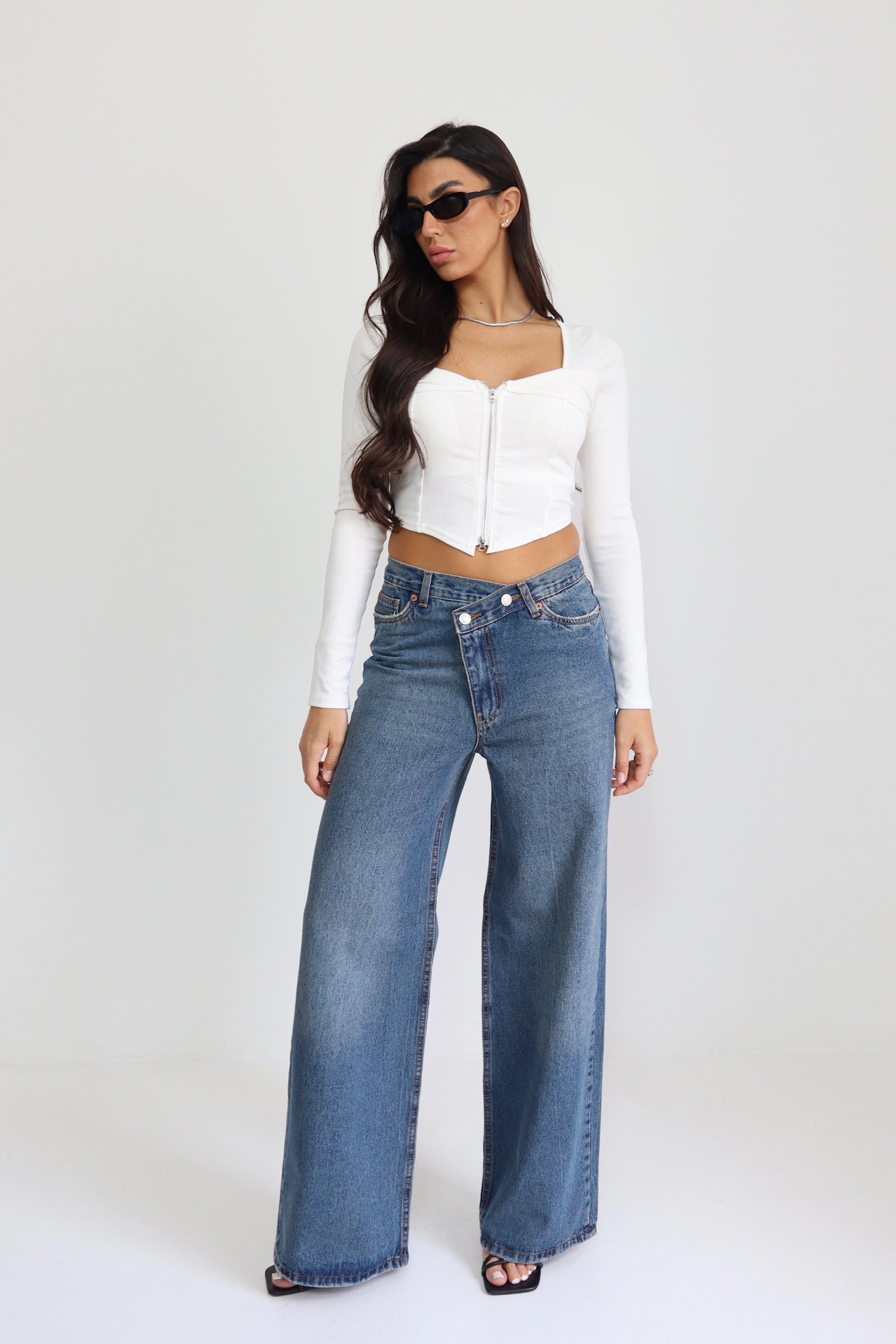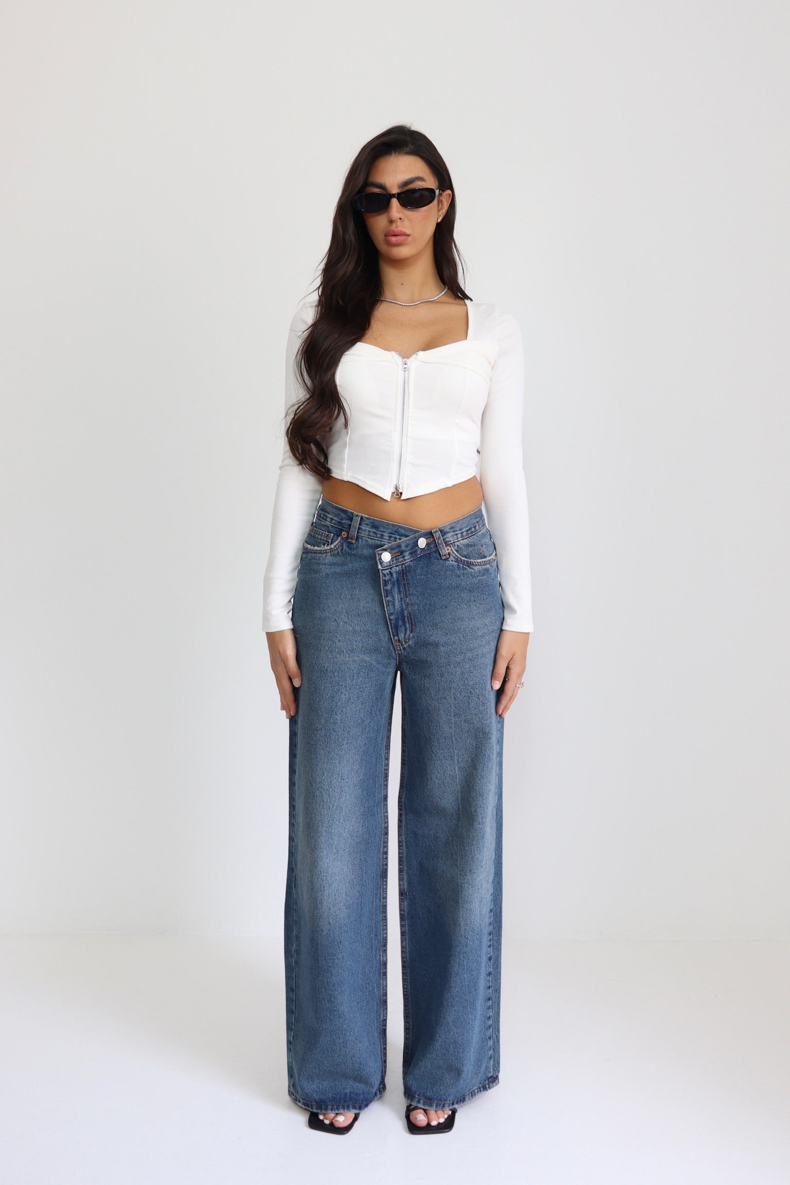 השתמשו בתוכנית כביסה עדינה עם מים קרים. מים חמים יכולים לגרום לג'ינס להתכווץ ולדהות בעוד כביסה לא עדינה עלולה לשחוק את הדנים