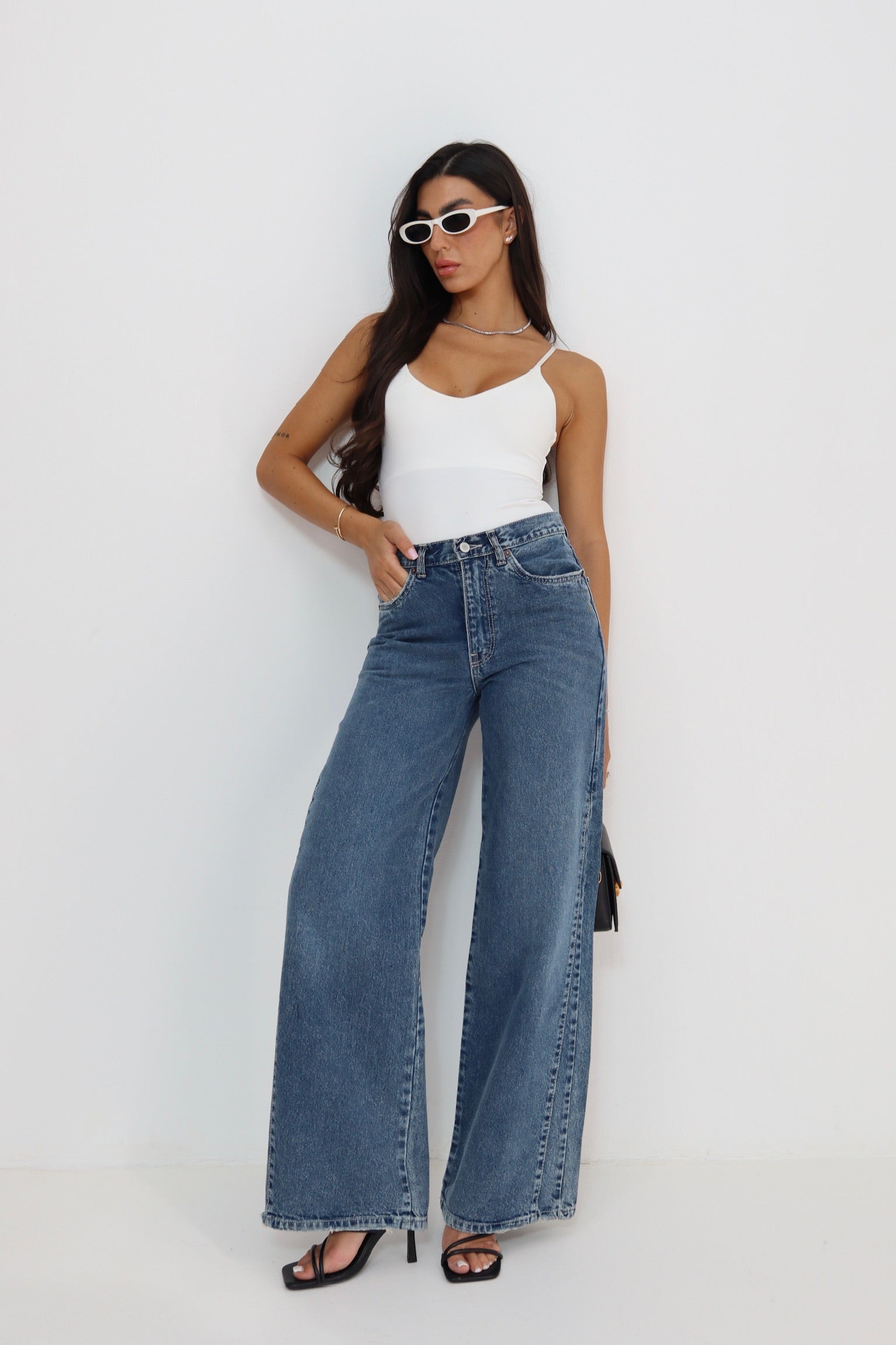 השתמשו בתוכנית כביסה עדינה עם מים קרים. מים חמים יכולים לגרום לג'ינס להתכווץ ולדהות בעוד כביסה לא עדינה עלולה לשחוק את הדנים