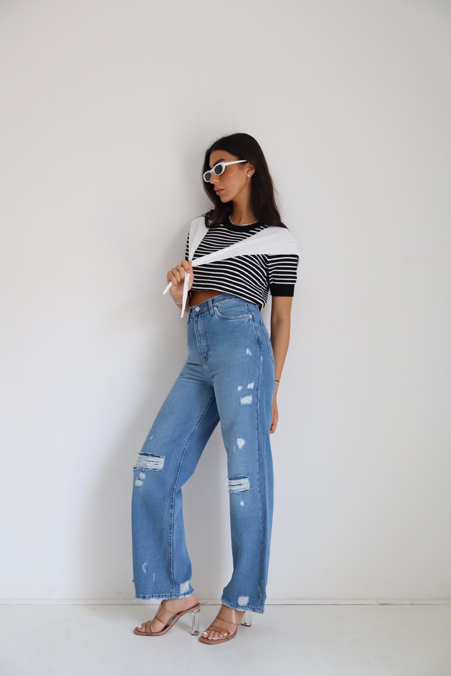 השתמשו בתוכנית כביסה עדינה עם מים קרים. מים חמים יכולים לגרום לג'ינס להתכווץ ולדהות בעוד כביסה לא עדינה עלולה לשחוק את הדנים